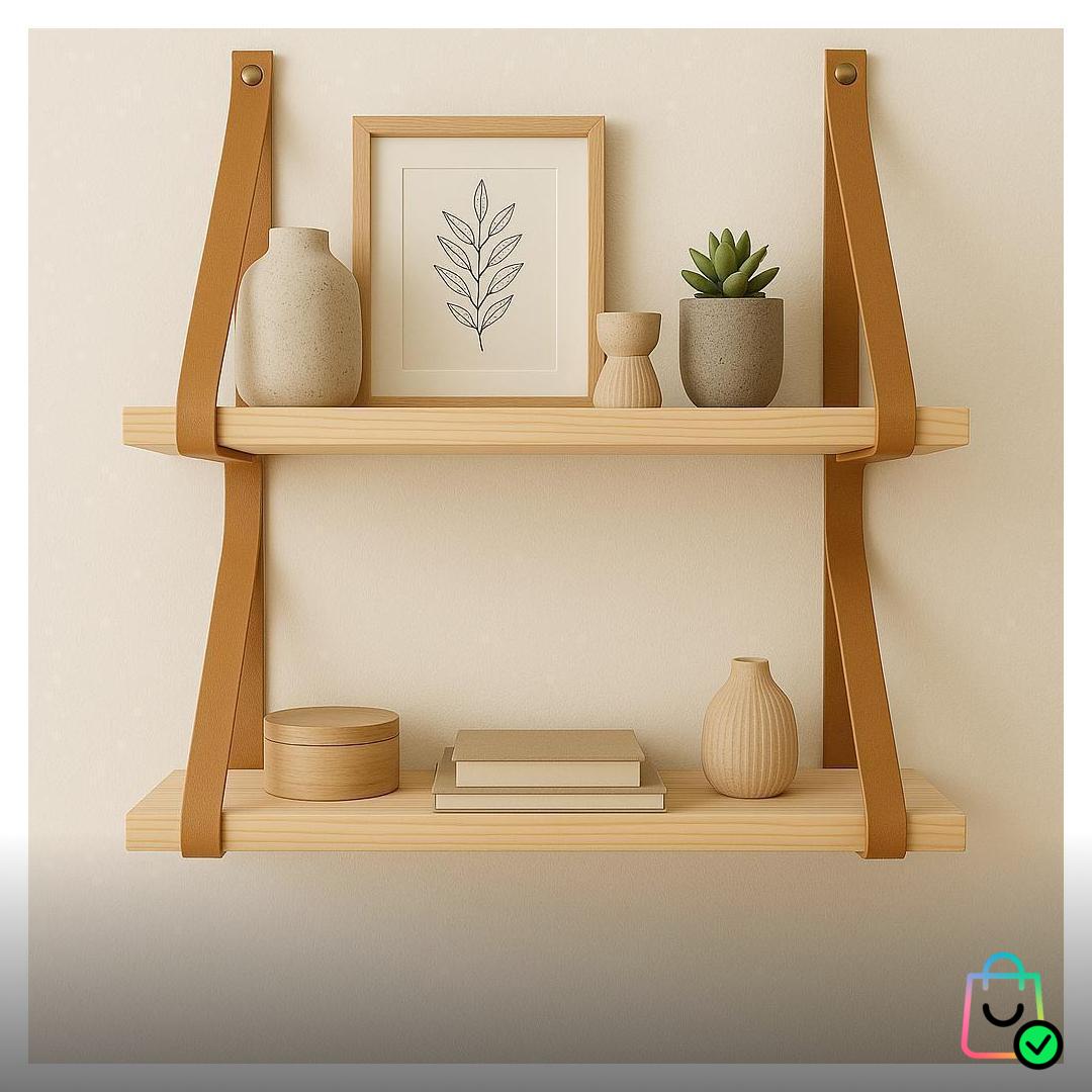/ Kit 2 Prateleiras em pinus e alças de couro